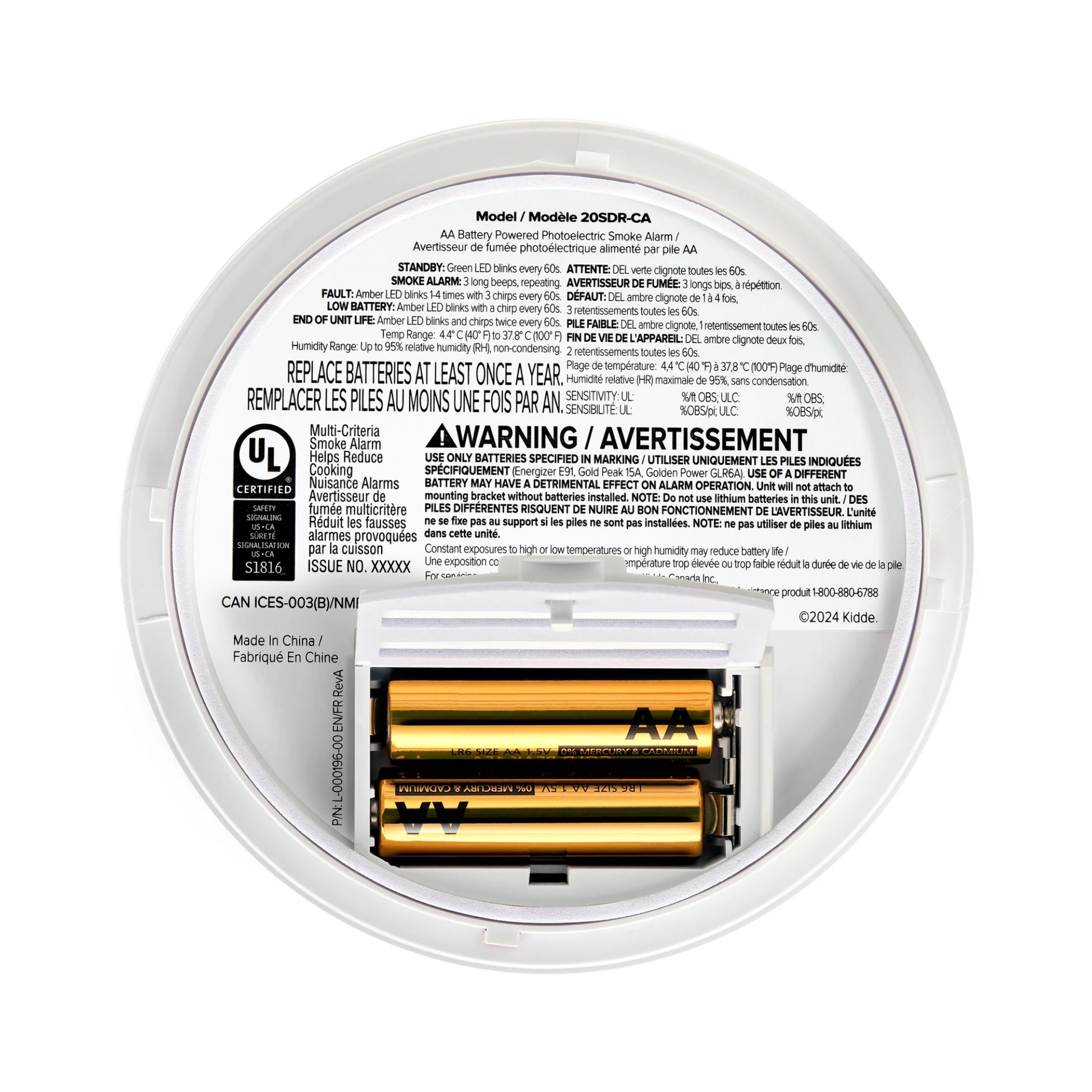 Détecteur de fumée compact Kidde, alimenté par piles AA
