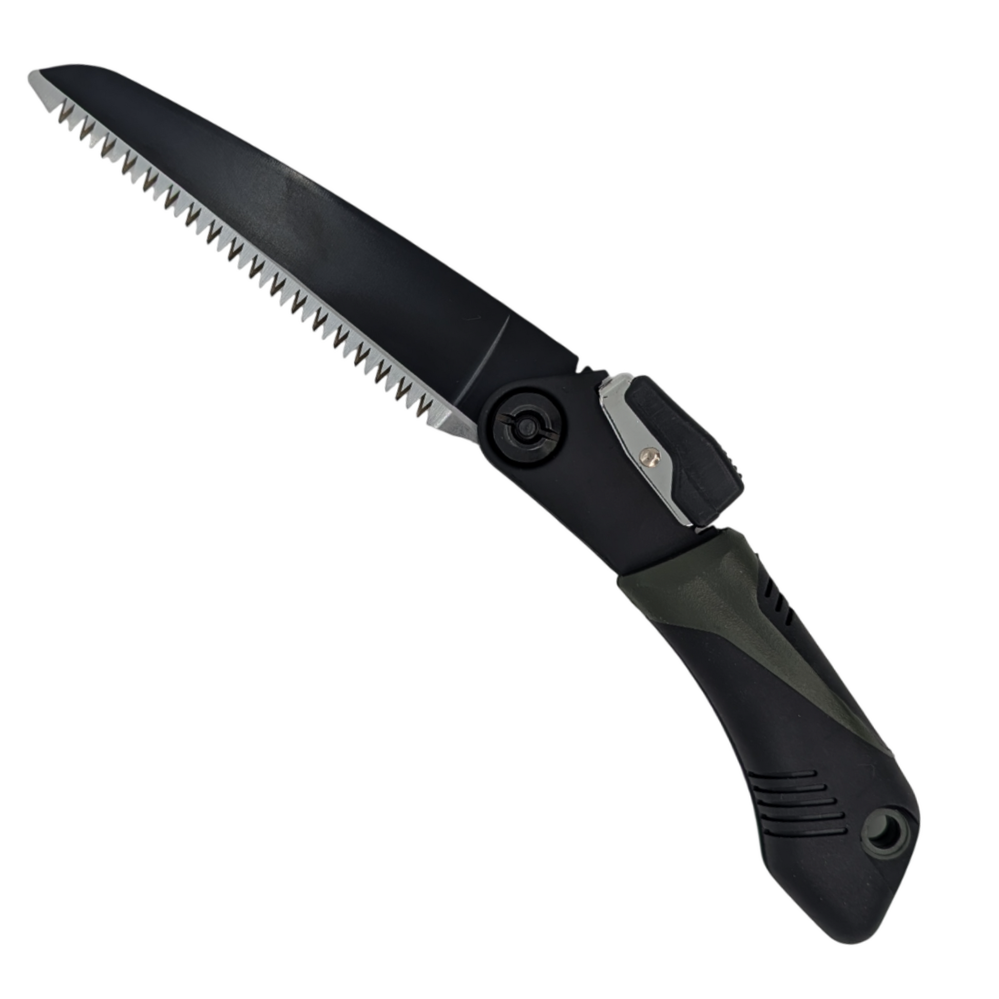 The Growtech Pocket Folding Saw is a compact, highly efficient cutting tool designed for on-the-go use, fitting easily into your pocket for convenience. Its high-carbon steel blade, measuring 5 inches, features impulse-hardened tri-edge teeth for exceptional durability and sharpness. The fluorine coating reduces friction, making cutting smoother and less prone to binding or sap buildup. The blade locks into two positions for versatile angles, and the rubberized handle provides a secure, comfortable grip. Weighing just 5 oz. and with an overall length of 11 inches when open, this Japanese-made saw combines portability, strength, and precision for outdoor adventures, camping, or quick pruning tasks.