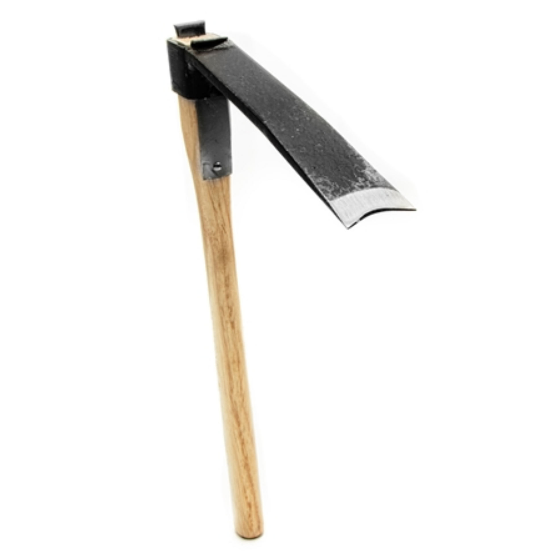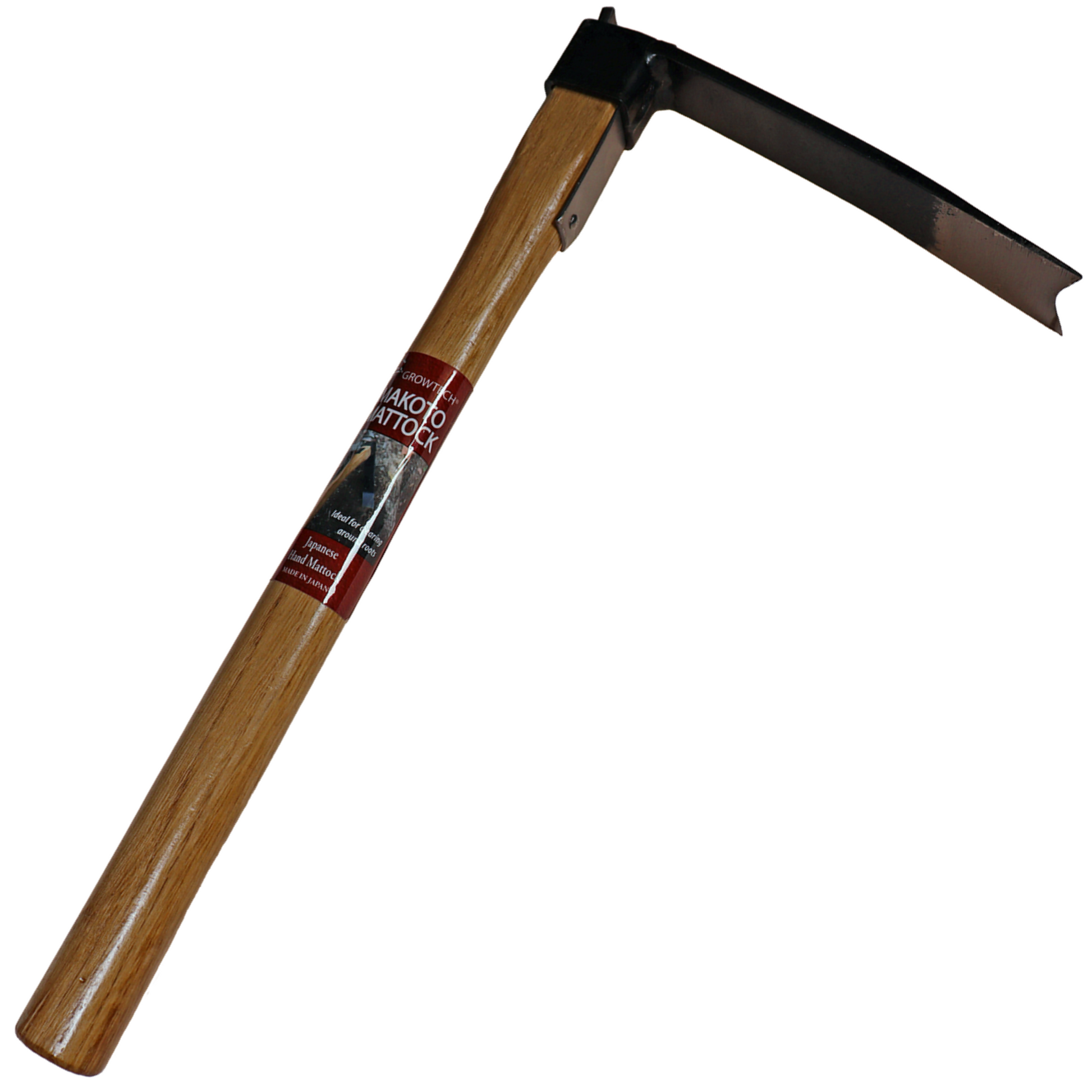 The Growtech Makoto Mattock Narrow Hoe is a specialized gardening tool designed for efficiently clearing dirt and small roots, especially around trees and plants. Its narrow, sharp blade made from high carbon tool steel allows for quick chopping through soil and roots, while the balanced weight of 1 lb and overall length of 15.5 inches make it easy to handle for precise work. Crafted in Japan, this mattock combines durability and functionality for gardening tasks requiring finesse and strength.