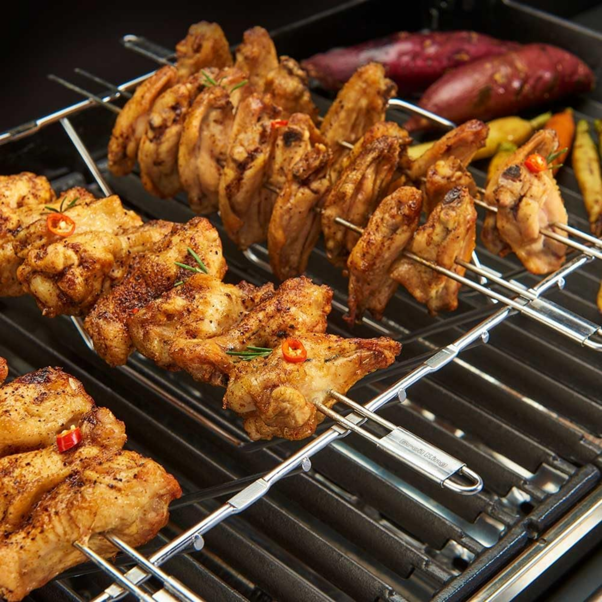 - Double-Pronged Skewers: Includes 6 skewers to secure food pieces, preventing them from spinning.