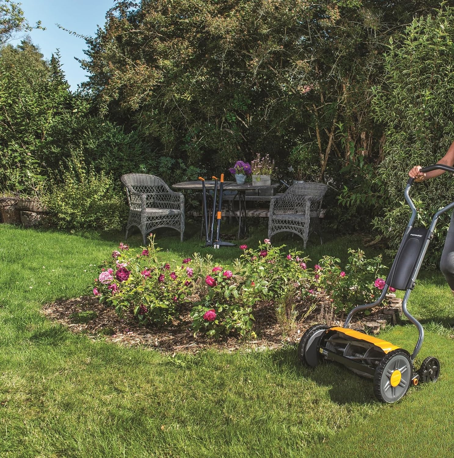 Experience exceptional lawn care with this Fiskar StaySharp™ Reel Mower, designed for optimal performance and user comfort. This innovative mower utilizes InertiaDrive™ technology, delivering 50% more cutting power, while the StaySharp™ Cutting System frees you from the hassle of regular blade sharpening. Environmentally friendly and ultra-quiet, it’s 30% easier to push than traditional reel mowers, allowing you to maintain your lawn with minimal effort and maximum efficiency. Say goodbye to gasoline, cords, and noise—it’s time to elevate your mowing experience!